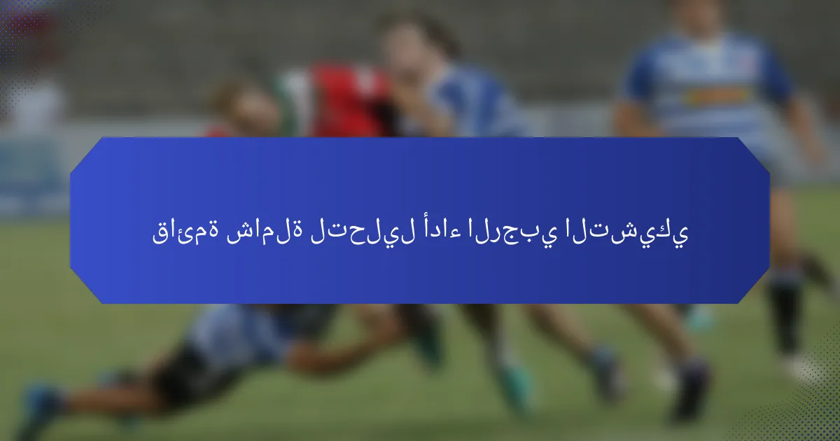 تتركز قائمة التحقق الشاملة لتحليل أداء الرجبي التشيكي على مقاييس رئيسية مثل إحصائيات اللاعبين، أداء الفريق، واستراتيجية اللعبة. من خلال تقييم هذه العناصر بشكل منهجي من خلال جمع البيانات وتحليل الفيديو، يمكن للمدربين تحديد نقاط القوة والضعف، مما يوجه التدريب والتعديلات الاستراتيجية في النهاية. إن استخدام برامج متخصصة وتقنيات قابلة للارتداء يعزز من الرؤى المكتسبة، مما يضمن اتخاذ قرارات مستنيرة لتحسين الأداء العام.