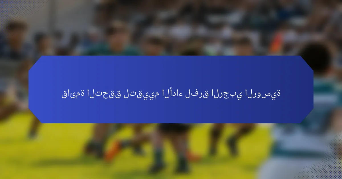 قائمة التحقق لتقييم الأداء لفرق الرجبي الروسية ضرورية لتقييم قدرات الأفراد والفرق. من خلال التركيز على مؤشرات الأداء الرئيسية، يمكن للمدربين تحديد نقاط القوة والضعف، مما يمكّن من التدريب المستهدف والتخطيط الاستراتيجي. إن دمج أدوات مثل تحليل الفيديو وتتبع اللياقة البدنية يعزز عملية التقييم، مما يؤدي في النهاية إلى تحسين الأداء في الملعب.